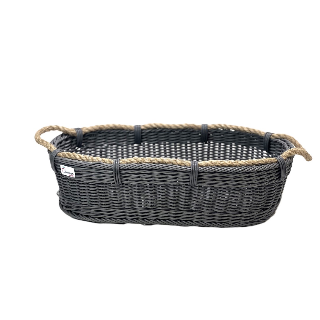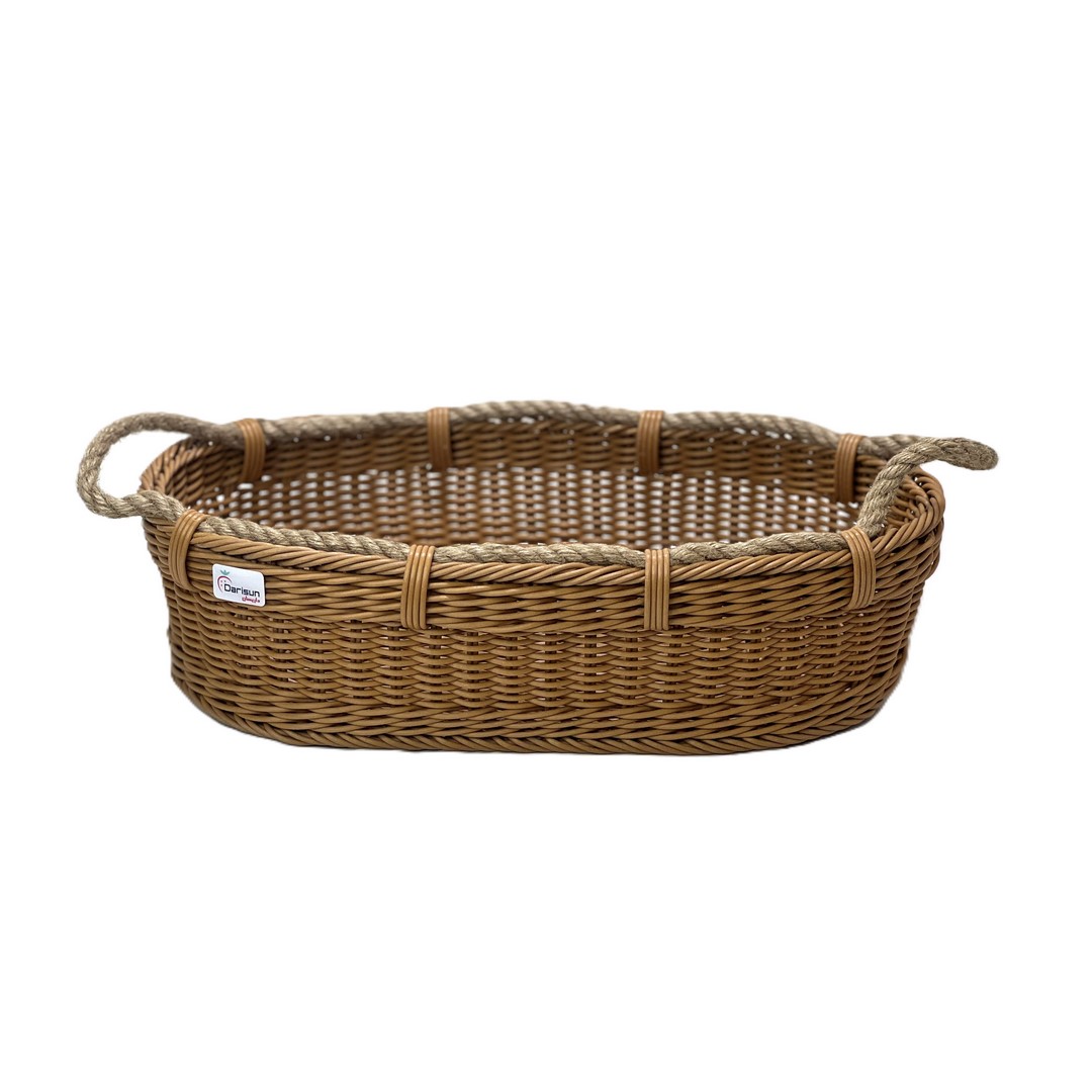سبد بیضی پلاستیکی دسته کنفی قهوهای مناسب آشپزخانه